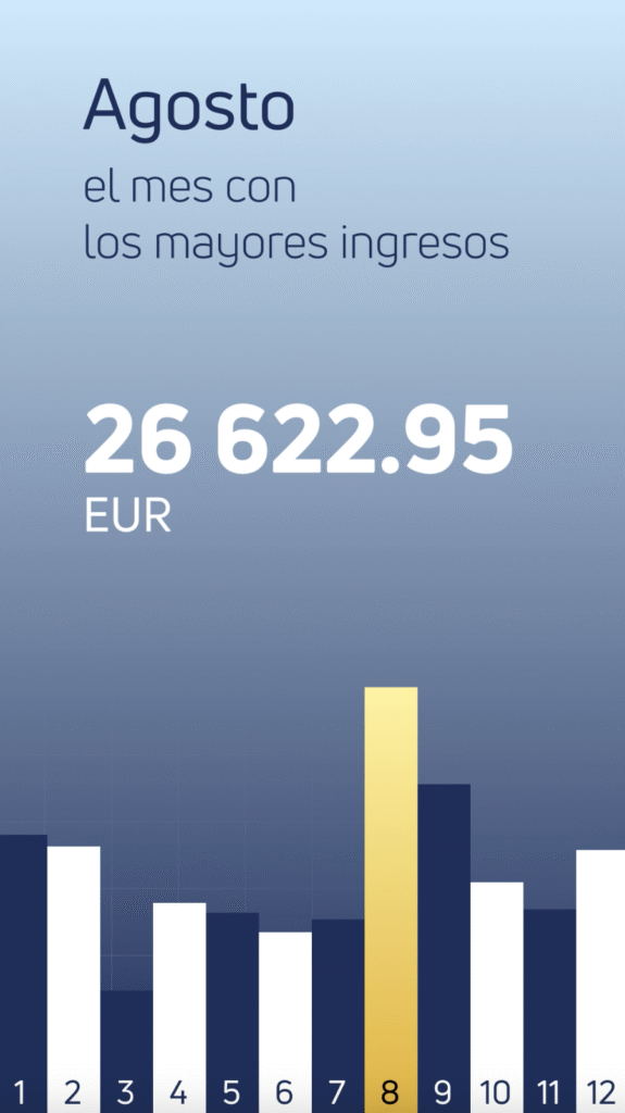 El Banking Wrapped con ajustes visuales y de animación para respetar tu identidad de marca: logotipo, colores, fuentes, gráficas, música.